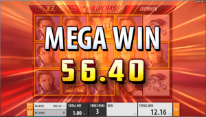 For each game I was playing €1. I win more than 5 times my bet 14 times, and the largest of these wins was 26.80 times my bet. Overall, my largest win was 35.92 times my bet, but this win was the total from 1 of 2 free spin sessions. This means that I was losing 34 cents per game on average.